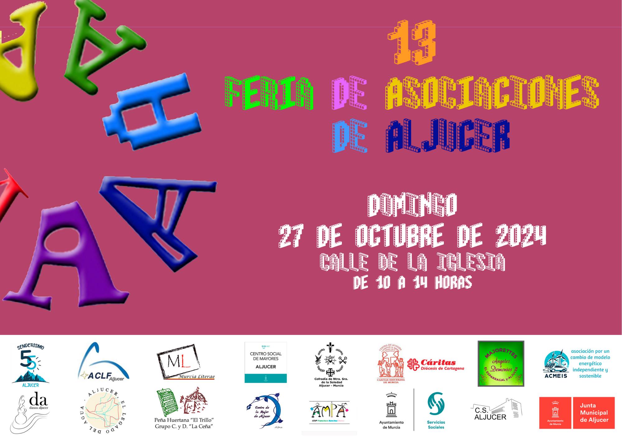 Otro año más, asociaciones de Aljucer nos reunimos para pasar una mañana juntos en la calle encontrándonos contigo, en esta fiesta sencilla en la que disfrutamos estando juntos, compartiendo nuestras aficiones y nuestras inquietudes.